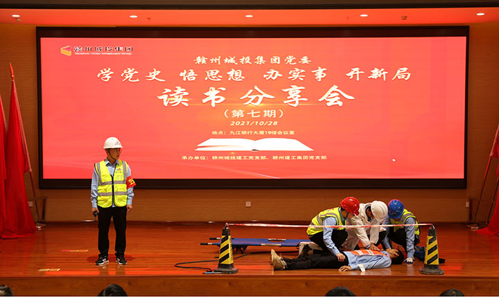 活動(dòng)在紅色歌曲《唱支山歌給黨聽》中拉開帷幕,抒發(fā)了城投人對(duì)黨、對(duì)祖國的無比熱愛之情。讀書分享活動(dòng)中,來自贛州城投建工黨支部、贛州建工集團(tuán)黨支部的6位選手結(jié)合黨史學(xué)習(xí)教育和工作實(shí)際,以蓬勃的朝氣、真摯的感情,熱情謳歌了中國共產(chǎn)黨建黨100年來創(chuàng)下的豐功偉績,深情講述了革命先輩的感人事跡,突出宣傳了國企改革、創(chuàng)新發(fā)展、項(xiàng)目攻堅(jiān)等方面取得的重大成就,充分展現(xiàn)了城投集團(tuán)廣大黨員職工為群眾服務(wù)、愛崗敬業(yè)、無私奉獻(xiàn)的精神風(fēng)貌。以賽促學(xué)、以賽明史,經(jīng)過角逐,贛州建工集團(tuán)黨支部的陳文港以優(yōu)異表現(xiàn)獲得第一名,贛州城投建工黨支部的曾涵鈺獲得第二名,其余選手獲得優(yōu)秀獎(jiǎng)。讀書分享活動(dòng)前,來自項(xiàng)目一線員工還為大家表演了情景劇《觸電事故應(yīng)急演練》,進(jìn)一步為大家普及安全知識(shí),提高大家的安全意識(shí)。