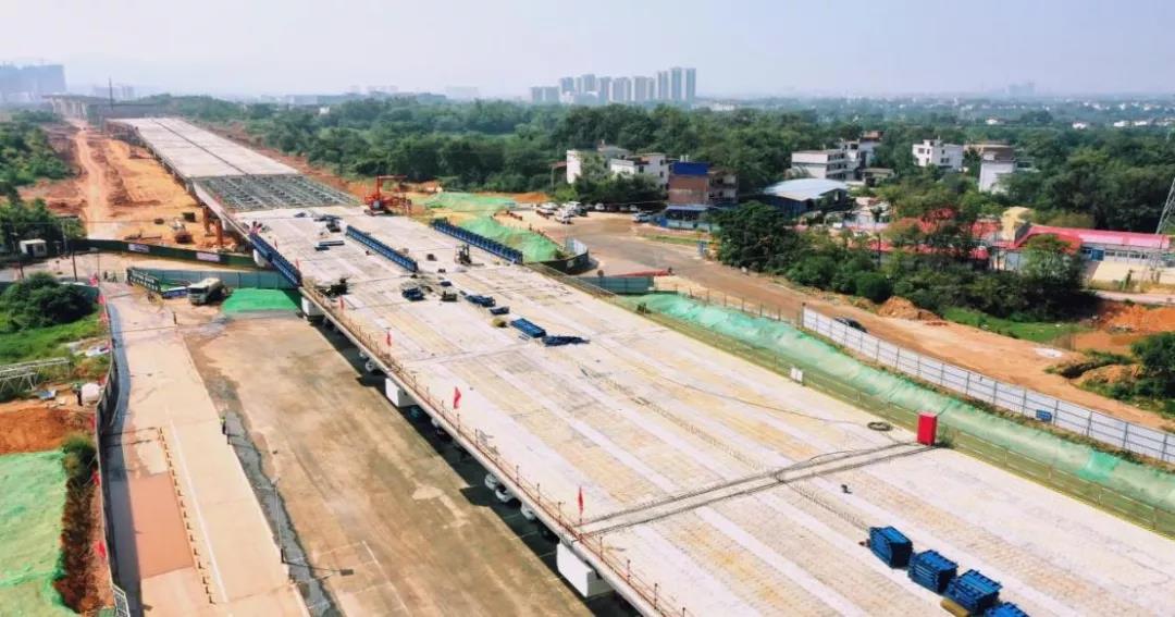 蓉江三路快速路(含地下綜合管廊)項目作為“四橫六縱”中的一條南北走向主干線,南起丁香路,北至筱壩大橋南端接地點,總投資約25.87億元,全長約5.1公里,主路為高架段城市快速路,規(guī)模為雙向6車道。項目于2020年8月1日正式開工,截至2021年11月15日,共完成總工程量的51%,其中橋梁工程完成66.2%,道路工程完成48.7%,地下綜合管廊工程完成約84.6%,預計在2022年年底完工。項目建成后,可實現(xiàn)蓉江新區(qū)、高鐵新區(qū)南北向聯(lián)系,大大提高新老城區(qū)交通服務水平,實現(xiàn)贛州交通發(fā)展水平與社會經(jīng)濟發(fā)展水平相適應。
