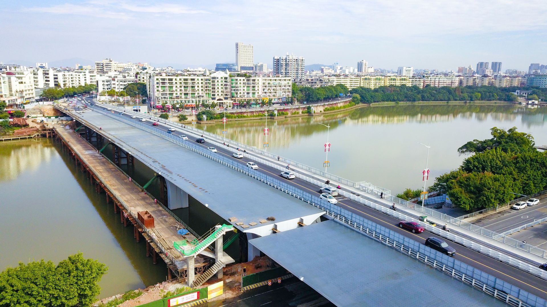 項(xiàng)目建設(shè)內(nèi)容包括拆除既有老橋,在老橋原位新建一幅18米寬橋梁;北岸東側(cè)新建一處地下車庫(kù);西側(cè)改造現(xiàn)有景觀停車場(chǎng);長(zhǎng)征大道增設(shè)一對(duì)連接章江南大道的匝道及相關(guān)配套專業(yè)工程等,總投資額3.7億元,施工合同工期為2年,計(jì)劃于2022年6月底完工。